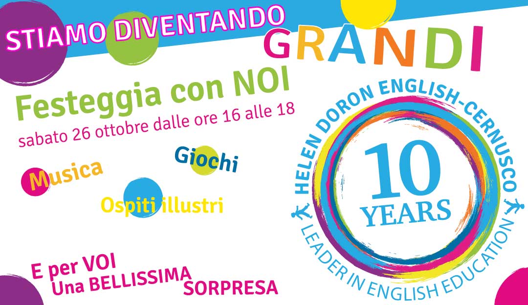 La scuola di inglese Helen Doron di Cernusco compie quest’anno ben 10 anni di attività e vuole condividere questo importante risultato con tutti i suoi allievi e amici, piccoli e grandi.