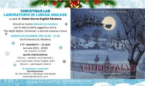 Unisciti al nostro laboratorio natalizio per la lettura della suggestiva storia ‘The Night Before Christmas’ e attività creative a tema. SABATO 20 DICEMBRE ORE 16:00 – 17.30Via Fontanesi 14…