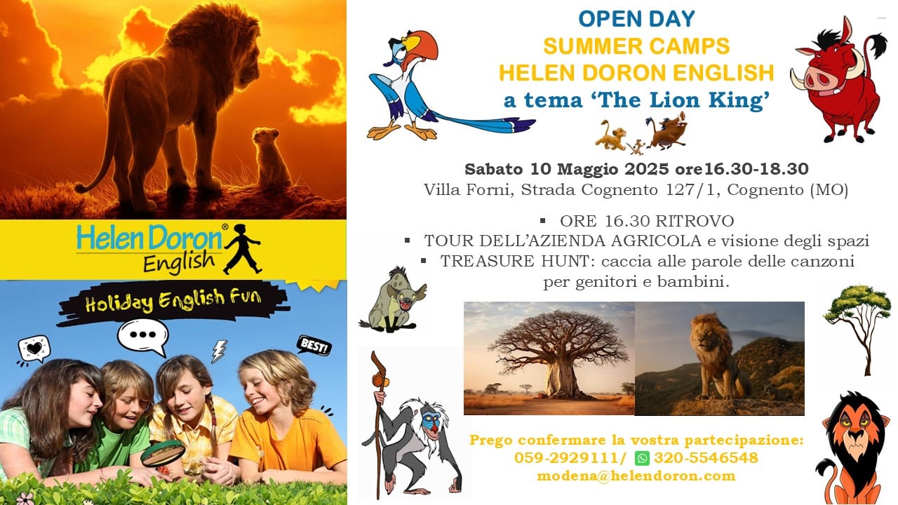 Vi aspettiamo numerosi all’OPEN DAY, che si terrà SABATO 10 MAGGIO ore 16.30 – 18.30, dedicato alla presentazione degli ALL-ENGLISH SUMMER CAMP 2025!!!