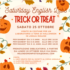 Home » Blog » Saturday English Labs: 25 Ottobre “trick or treat”